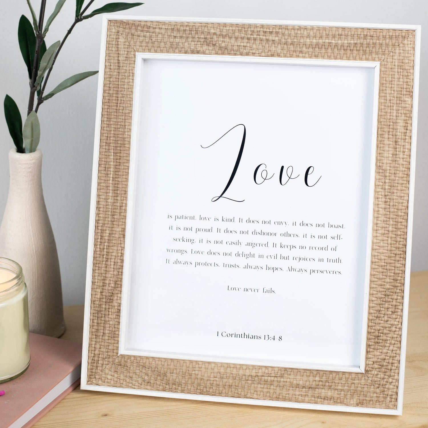 Add some beautiful typography to your walls with these Love is and God is Love prints. Bring love into your home with this beautiful and sentimental piece. Featuring scripture from the bible, this print is perfect for any home. A beautiful, uplifting and inviting visual in your home and space.